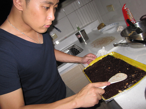 *香蕉泥與餅乾不可以太濕潤,太濕會讓巧克力凝結後還有香蕉的軟稠液體出現