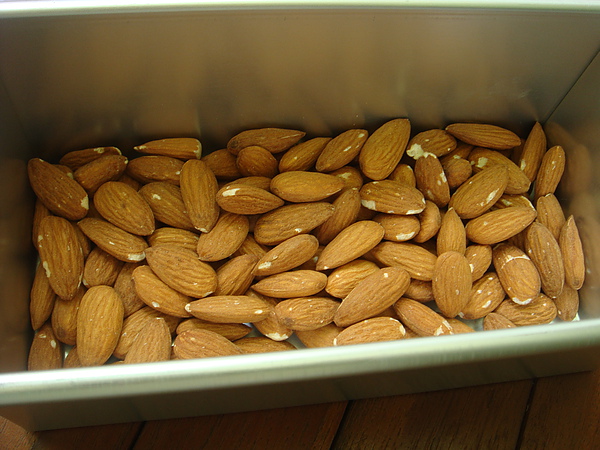 1. 將材料a的杏仁放入烤箱中以130度烤5分鐘